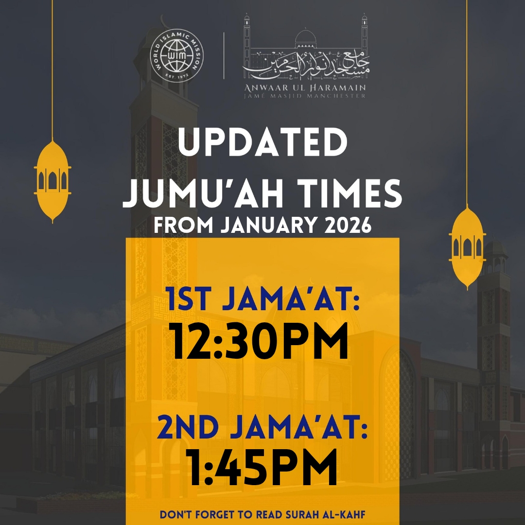 *Announcement*Updated Jumu’ah times from *Today* (4th April) at Anwaar ul Haramain Jamé Masjid Manchester...