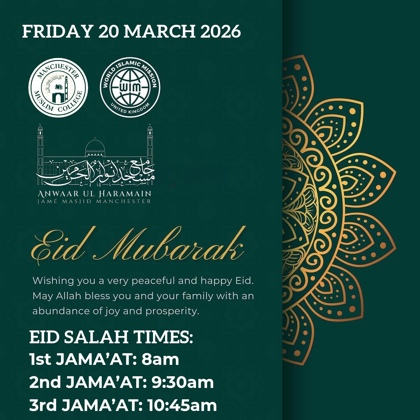 *Announcement*Updated Jumu’ah times from *Today* (4th April) at Anwaar ul Haramain Jamé Masjid Manchester...