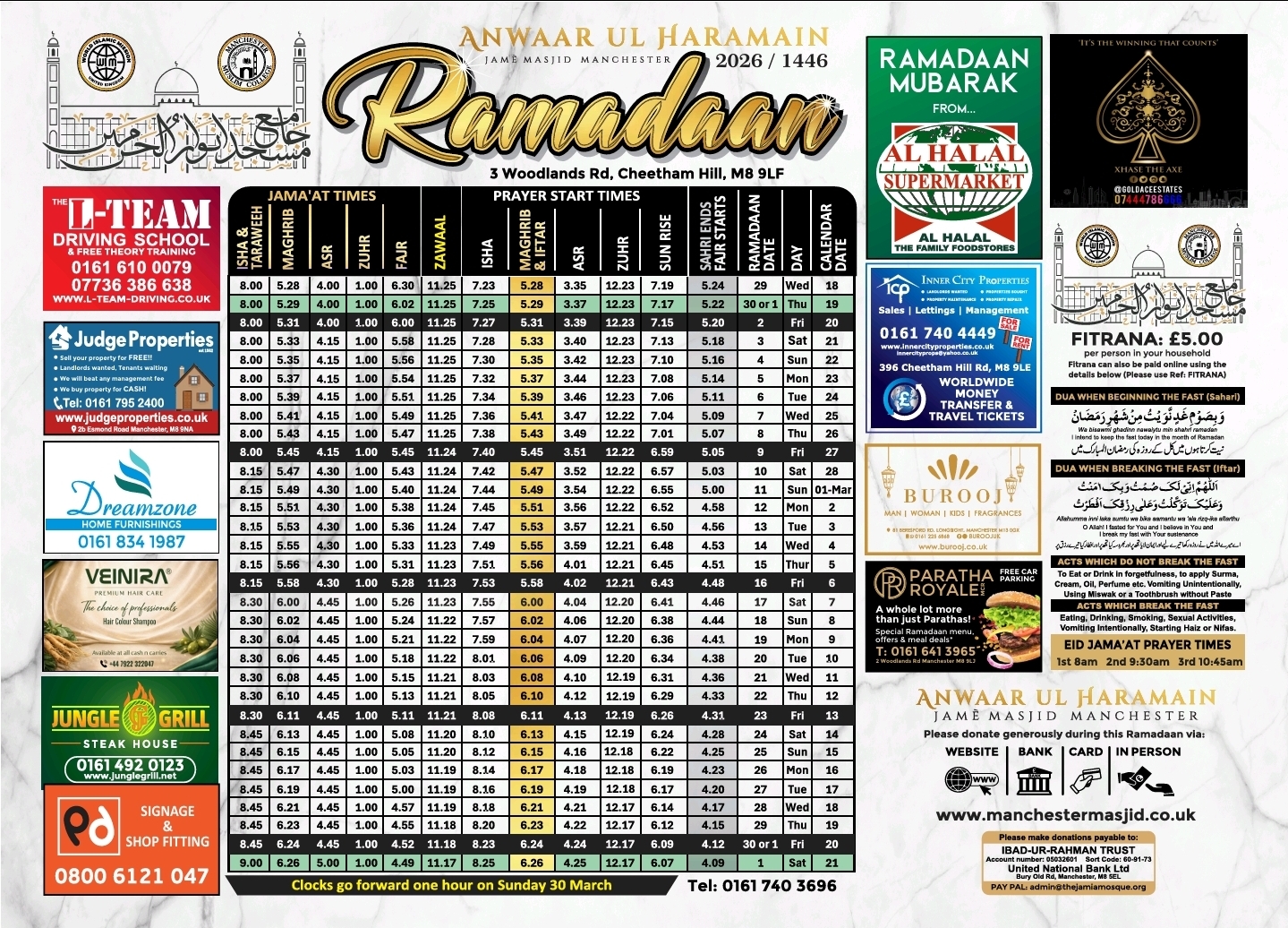 Ramadan Timetable 2026/1447